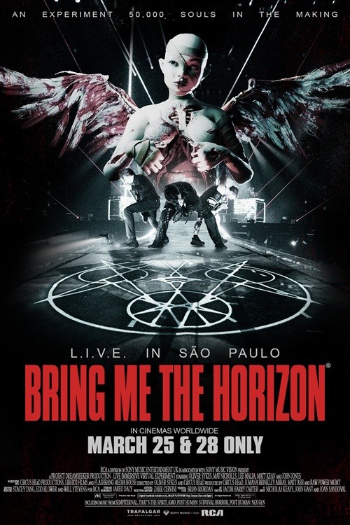 Bring Me The Horizon: L.I.V.E. in Sao Paulo (Live Immersive Virtual Experiment) captures the band's biggest headline show to date at Sao Paulo’s Allianz Parque Stadium, performing to a sold-out crowd of 50,000. Hailed by the band as their best show yet, the film expands the visual universe of POST HUMAN, blending cinematic production, fan perspectives and character cameos such as E.V.E, Selene & M8. Featuring multi-camera footage, drone shots and fan-submitted footage, it delivers an immersive, multi-angle experience that mirrors the energy of the night. The performance spans the full evolution of BMTH’s catalogue, from Sempiternal and That’s the Spirit to amo and the POST HUMAN series. One of the world’s biggest acts, the BRIT-winning and Grammy-nominated band have sold over 6.6 million albums and garnered 9.4+ billion streams. L.I.V.E. in Sao Paulo captures not just a performance, but a moment in music history.
