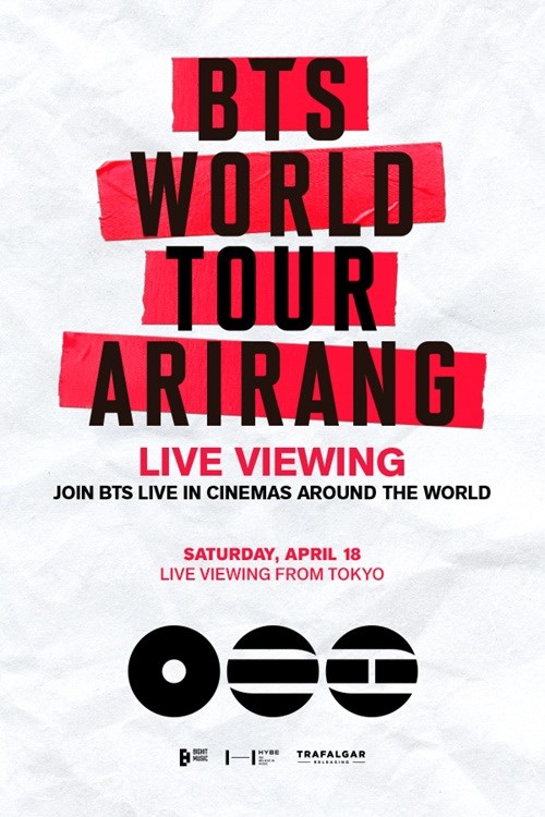 Pop Royalty BTS returns to the global stage with their highly anticipated world tour, marking their first large-scale tour in approximately four years. Spanning 34 cities across the world with a total of 82 shows, the tour opens with landmark concerts in Goyang, South Korea, and Tokyo, Japan, marking a new record for the most tour dates by a K-pop artist. Don’t miss your chance to experience two full-length concerts, presented live in cinemas worldwide. Titled ARIRANG, BTS’s world tour accompanies their fifth full-length album, which reflects the group’s identity through honest introspection and universal emotions such as longing and deep love, woven into music that defines them on their own terms. Featuring a spectacular 360-degree in-the-round stage design, the show delivers an immersive experience that places audiences at the very center of the performance. Share the electrifying moments of BTS’s defining cultural comeback together on the big screen worldwide, April 11 from Goyang and April 18 from Tokyo.